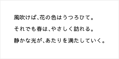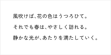 やさしく可憐な印象の明朝体。温かみがあり、文章に感情を乗せたいときに向いています。