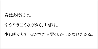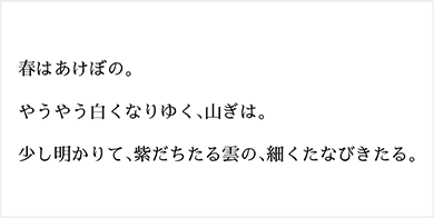 繊細で上品な雰囲気をもつ明朝体で、縦横の線のコントラストが美しく、文章にリズムが生まれるため、コラムや読み物との相性が良いのが特徴です。